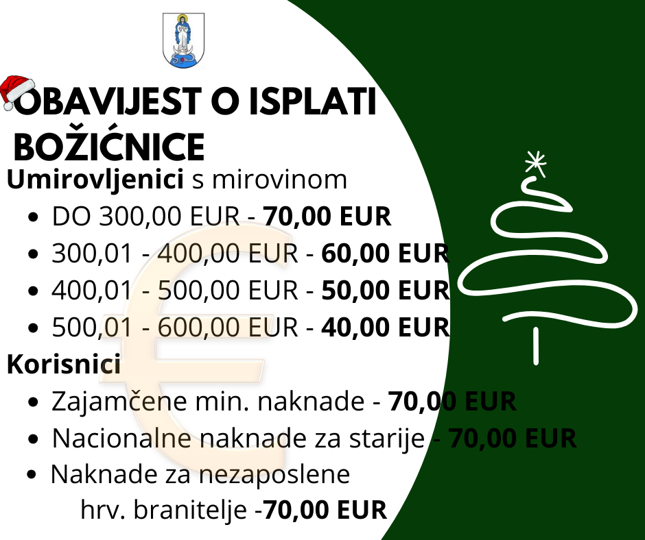 OBAVIJEST O ISPLATI BOŽIĆNICE